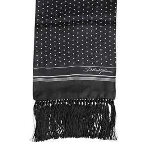 Dolce & Gabbana Black White Polka Dot Fringes Foulard Scarf