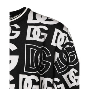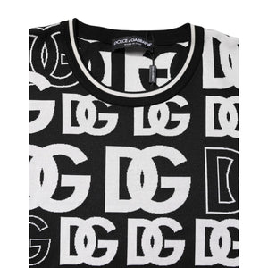 Dolce & Gabbana Black White Silk Knit DG Print T-shirt
