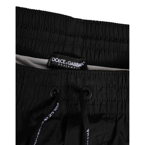 Dolce & Gabbana Black White Striped DG Logo Men Short Swimwear