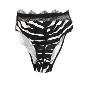Dolce & Gabbana Black White Zebra Print Lace Trim High Underwear