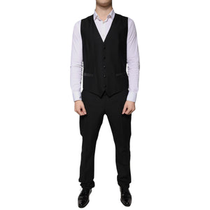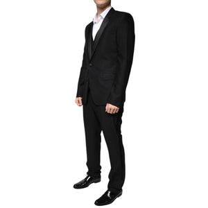 Dolce & Gabbana Black Wool 3 Piece Slim Fit Formal Suit