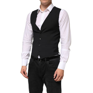Dolce & Gabbana Black Wool Dress Formal Men Waistcoat Vest