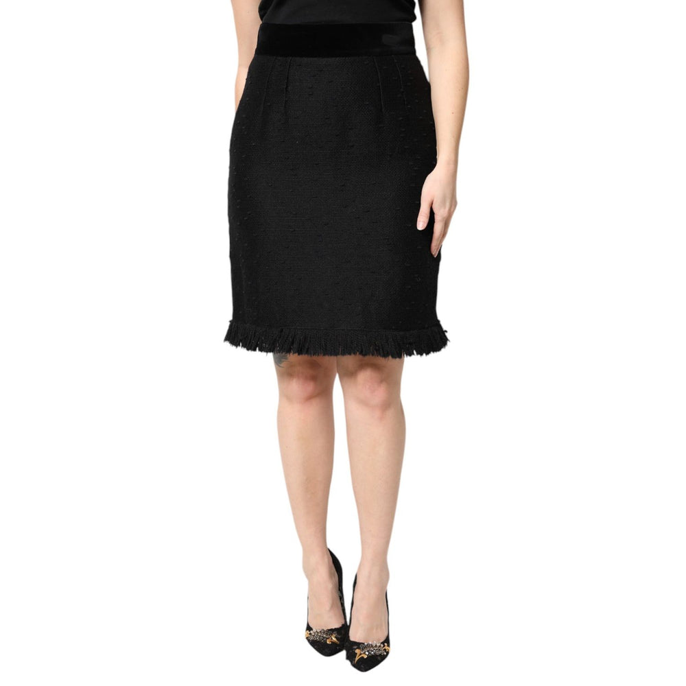 Dolce & Gabbana Black Wool Fringe High Waist Pencil Mini Skirt