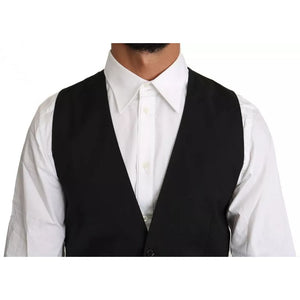 Dolce & Gabbana Black Wool Logo Waistcoat Vest