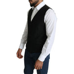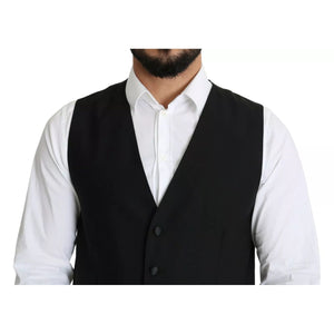 Dolce & Gabbana Black Wool Men Formal Waistcoat Vest