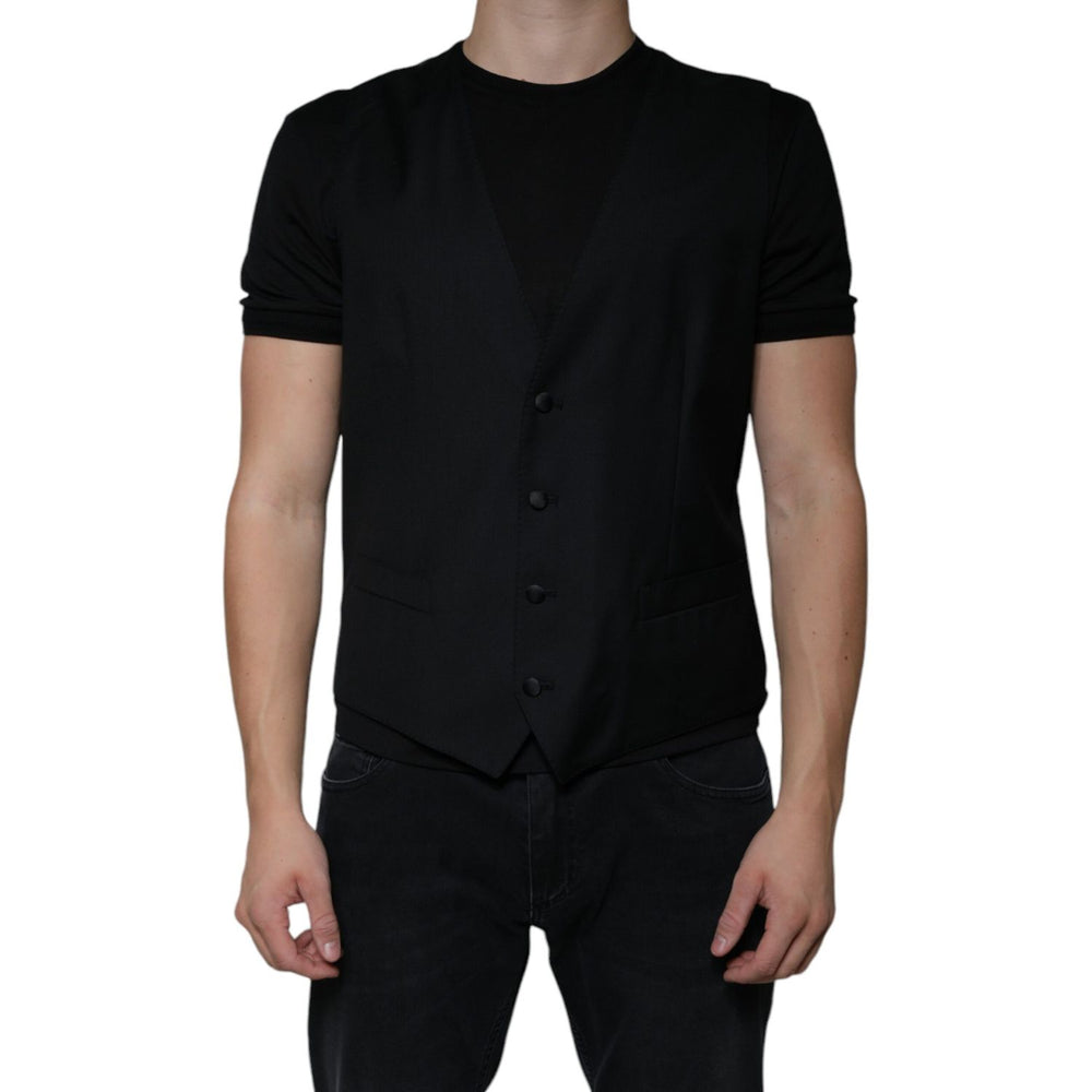 Dolce & Gabbana Black Wool Waistcoat Dress Formal Vest