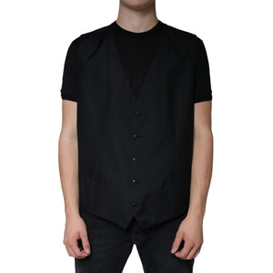 Dolce & Gabbana Black Wool Waistcoat Dress Formal Vest