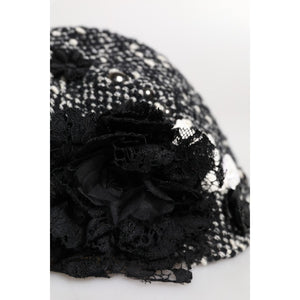 Dolce & Gabbana Black Wool White Floral Embellished Cloche Hat