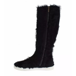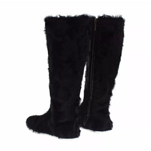 Dolce & Gabbana Black Xiangao Lamb Fur Leather Boots Shoes