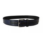 Dolce & Gabbana Blue Black Logo Print Silver Buckle Belt