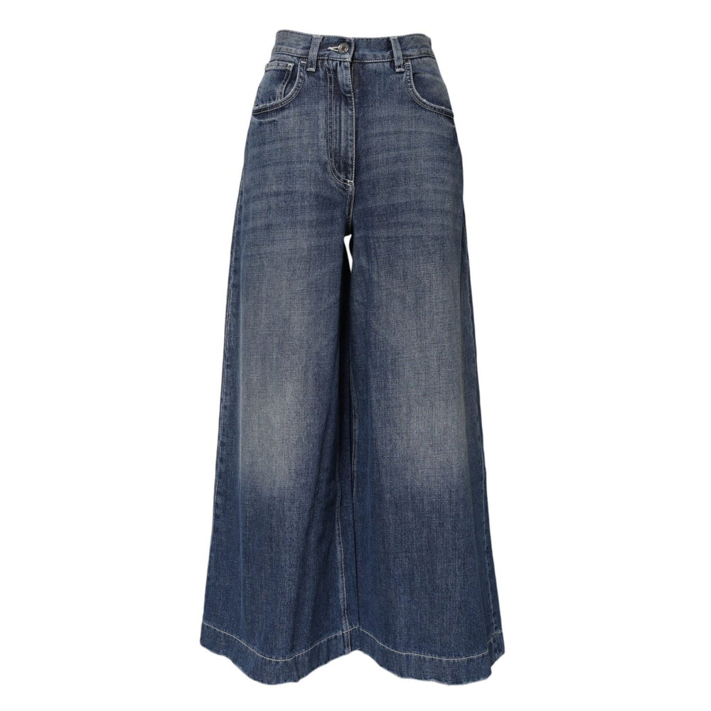 Dolce & Gabbana Blue Cotton High Waist Wide Leg Denim Jeans