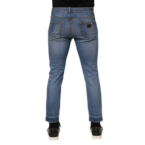 Dolce & Gabbana Blue Cotton Logo Plaque COMFORT Denim Jeans