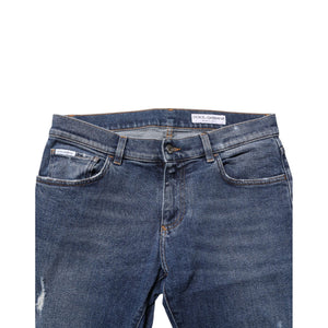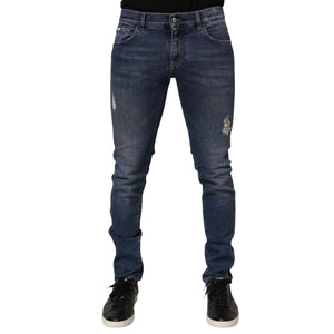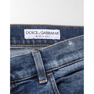 Dolce & Gabbana Blue Cotton Logo Plaque Skinny Men Denim Jeans