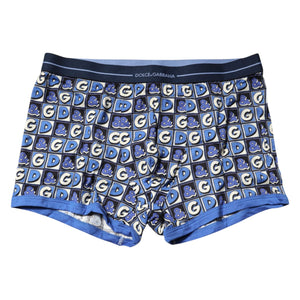 Dolce & Gabbana Blue Cotton Logo Print Regular Boxer Underwear