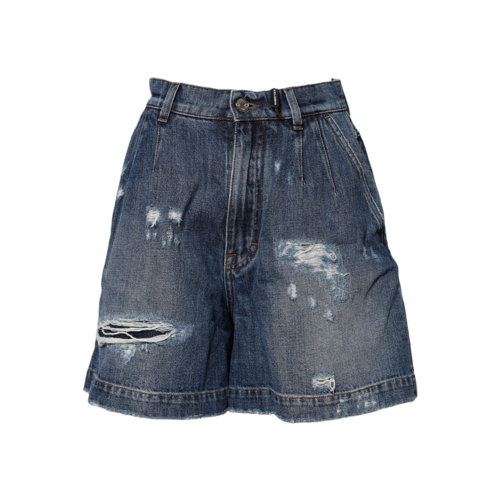 Dolce & Gabbana Blue Cotton Tattered Denim Bermuda Shorts