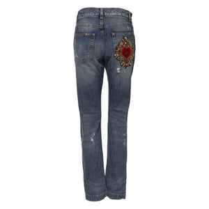 Dolce & Gabbana Blue Cotton Tattered Mid Waist Denim Jeans