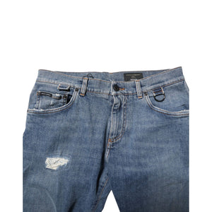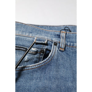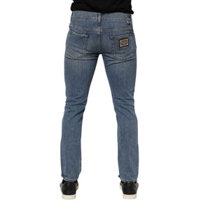 Dolce & Gabbana Blue Cotton Tattered Skinny Logo Denim Jeans