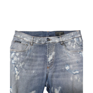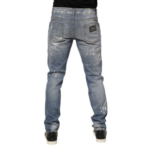 Dolce & Gabbana Blue Cotton Tattered Slim Fit Men Denim Jeans