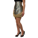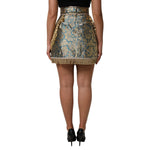 Dolce & Gabbana Blue Floral Jacquard Tasseled Mini Skirt
