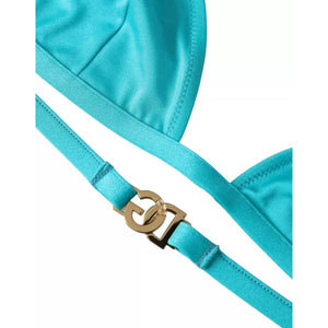 Dolce & Gabbana Blue Green Halter DG Logo Swimwear Beachwear Bikini Top