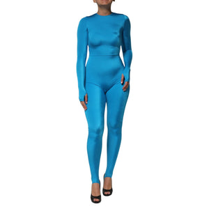 Dolce & Gabbana Blue Nylon Crew Neck Bodycon Jumpsuit Dress