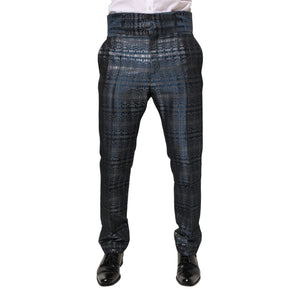 Dolce & Gabbana Blue Silver Shiny Silk Skinny Men Trouser Pants