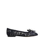 Dolce & Gabbana Blue Taormina Lace Crystals Flats Shoes