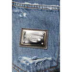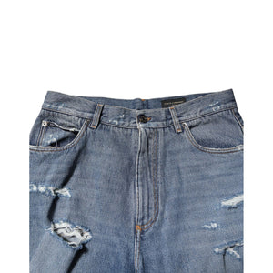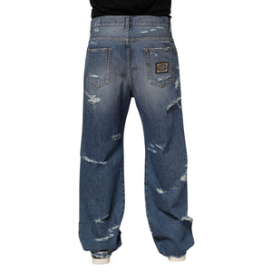 Dolce & Gabbana Blue Tattered Cotton Logo Plaque Denim Jeans