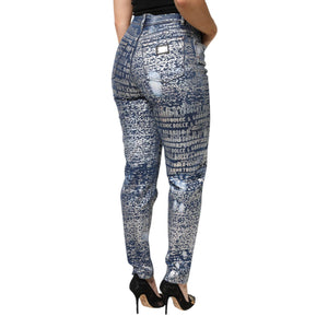 Dolce & Gabbana Blue Washed Print High Waist Denim Jeans