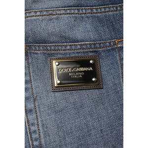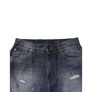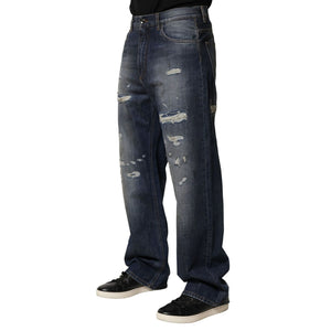Dolce & Gabbana Blue Washed Tattered Cotton Men Jeans