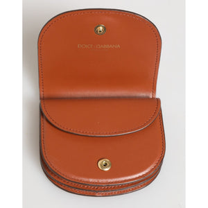 Dolce & Gabbana Brown Black Calf Leather Leopard Print Logo Plaque Wallet
