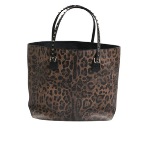 Absolutely stunning, 100% Authentic preowned Dolce & Gabbana brown calf leather Beatrice tote features a signature leopard print, round top handles with gold-tone and silver-tone stud detailing and a top magnetic closure.