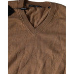 Dolce & Gabbana Brown Cashmere Knit V-neck Pullover Sweater
