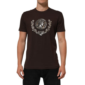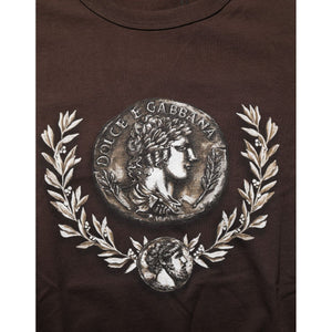 Dolce & Gabbana Brown Coin Laurel Print Men Crew Neck T-shirt