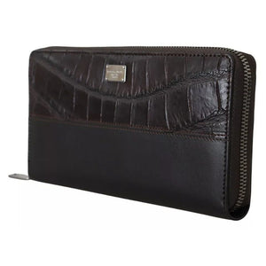 Dolce & Gabbana Brown Exotic Leather Zip Around Continental Clutch Wallet