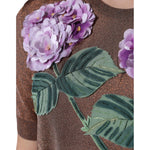 Dolce & Gabbana Brown Floral Applique Viscose Short Sleeve Top