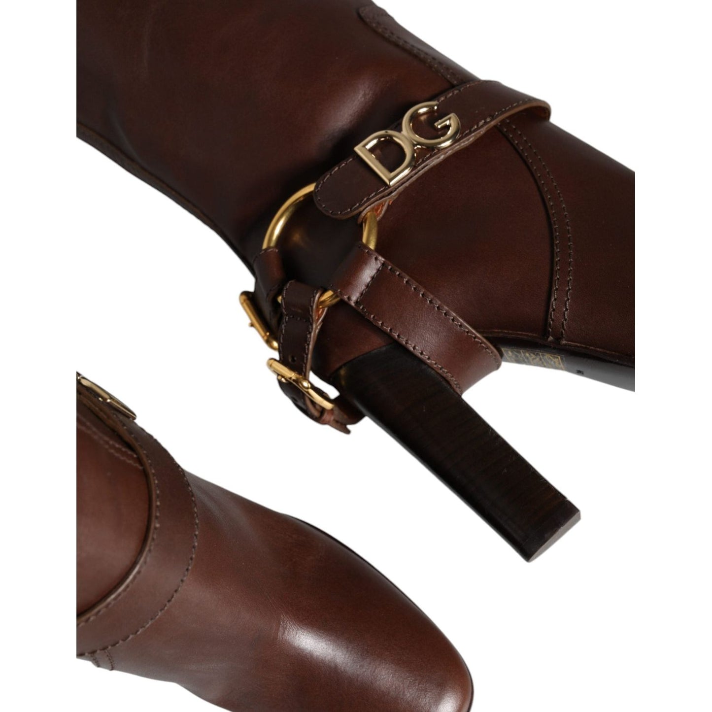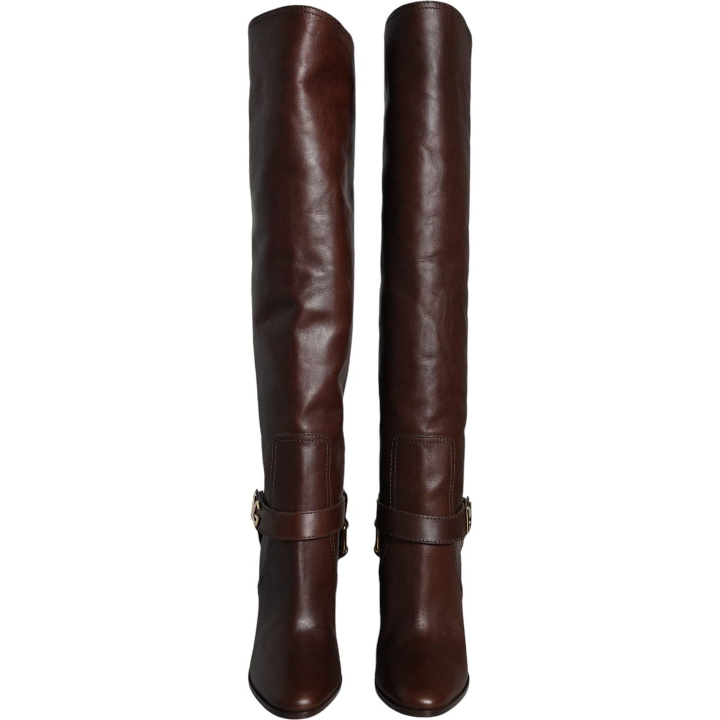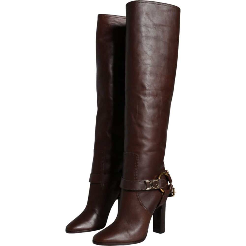 Dolce & Gabbana Brown Leather Gold Tone Logo High Boots Shoes