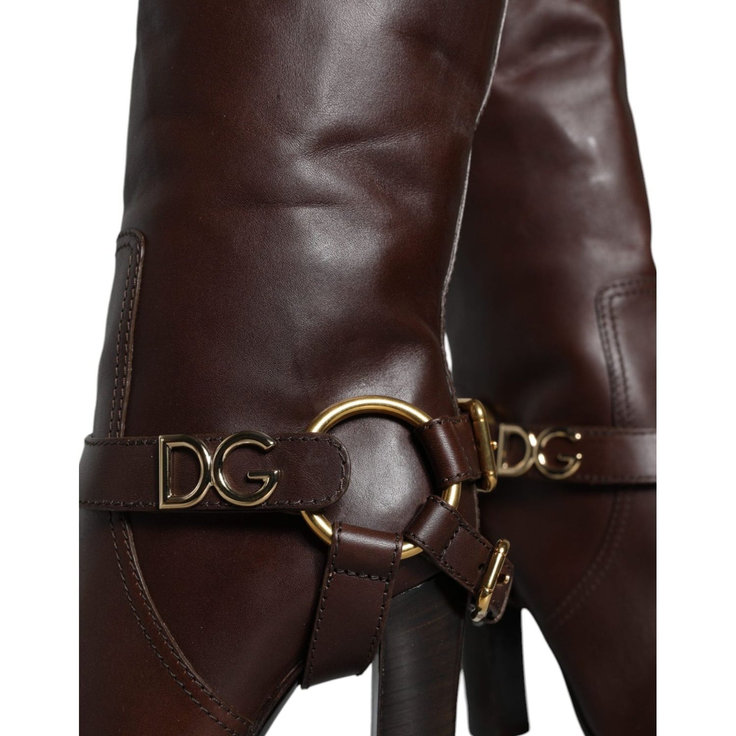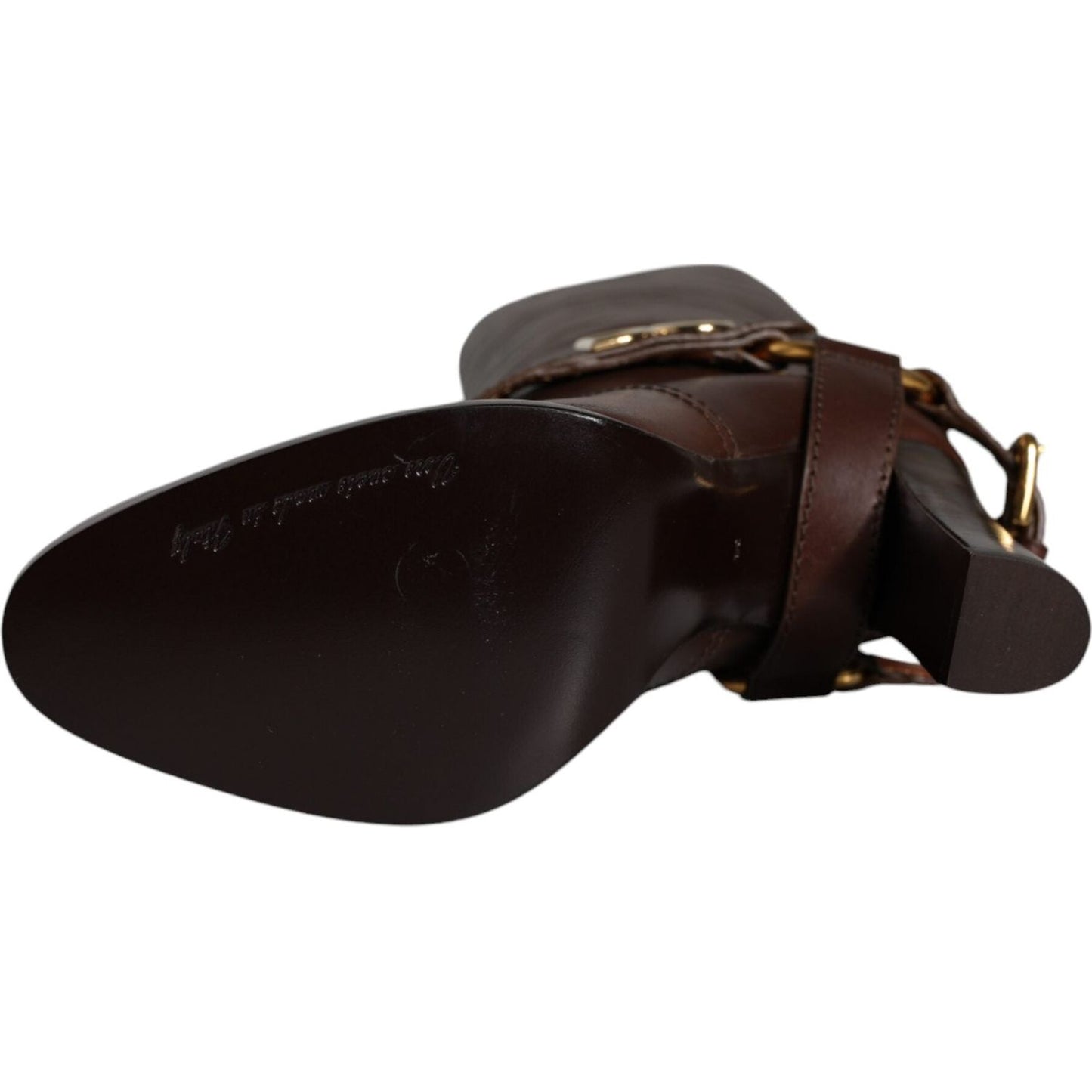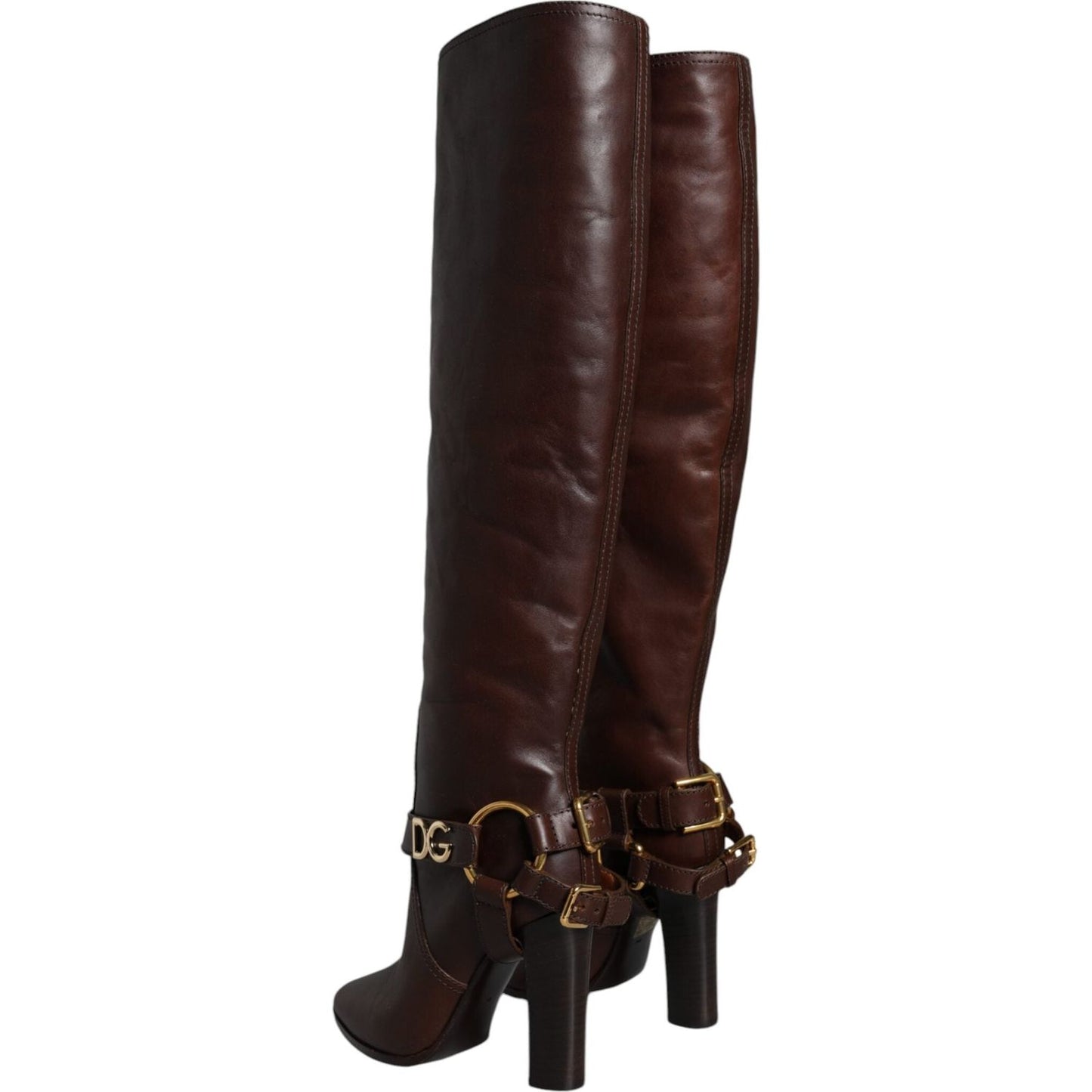Dolce & Gabbana Brown Leather Gold Tone Logo High Boots Shoes