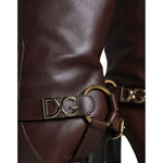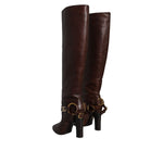 Dolce & Gabbana Brown Leather Gold Tone Logo High Boots Shoes