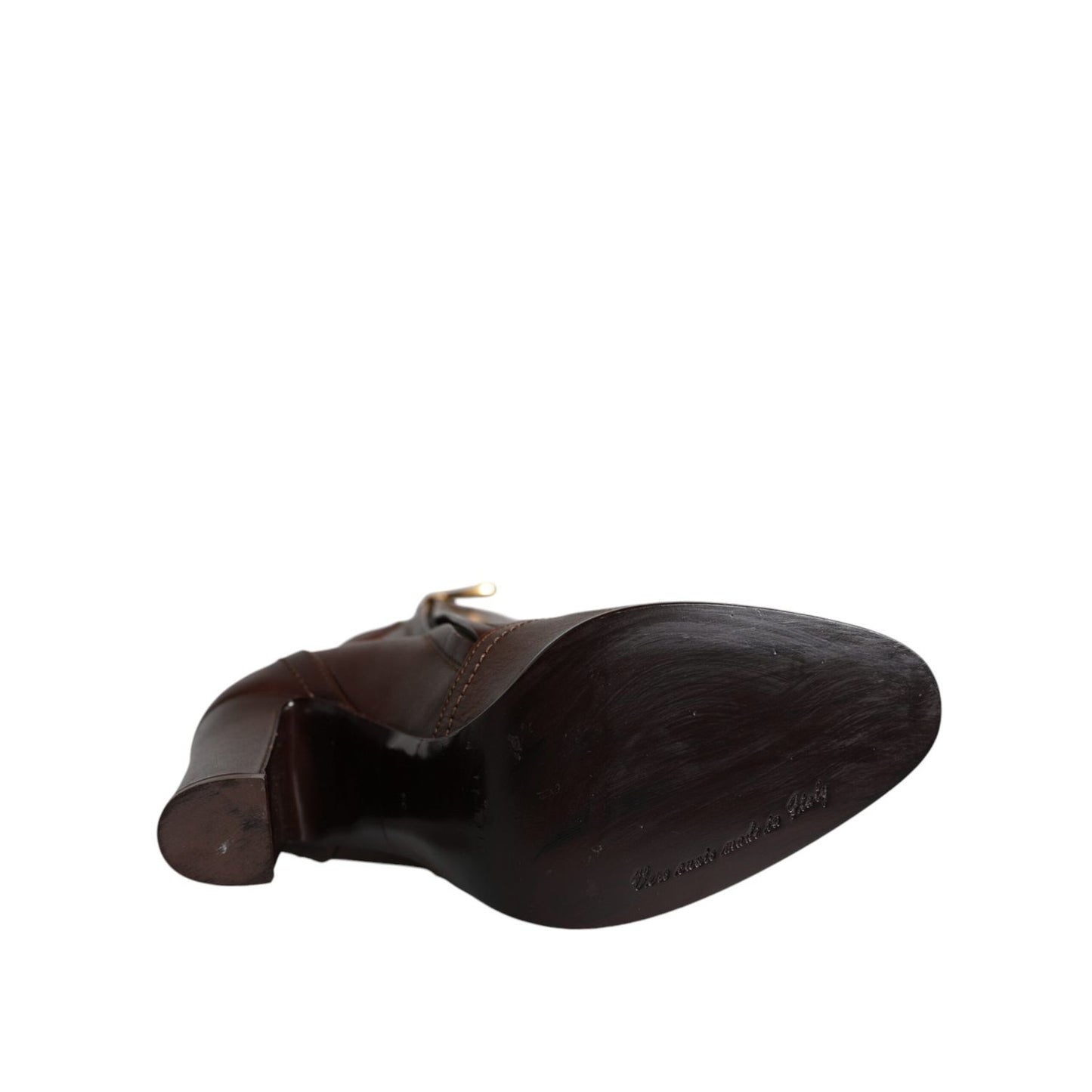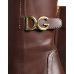 Dolce & Gabbana Brown Leather Heels Mid Calf Boots Shoes