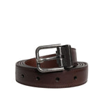 Dolce & Gabbana Brown Leather Silver Metal Buckle Belt