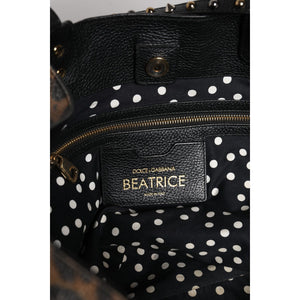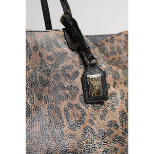 Dolce & Gabbana Brown Leopard BEATRICE Leather Logo Plaque Tote Bag