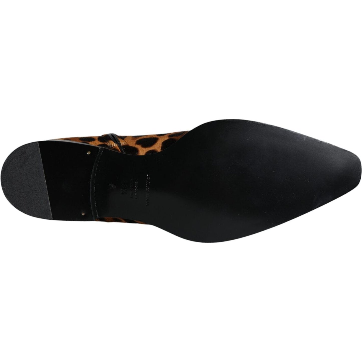 Dolce & Gabbana Brown Leopard Calf Fur Ankle Boots Shoes