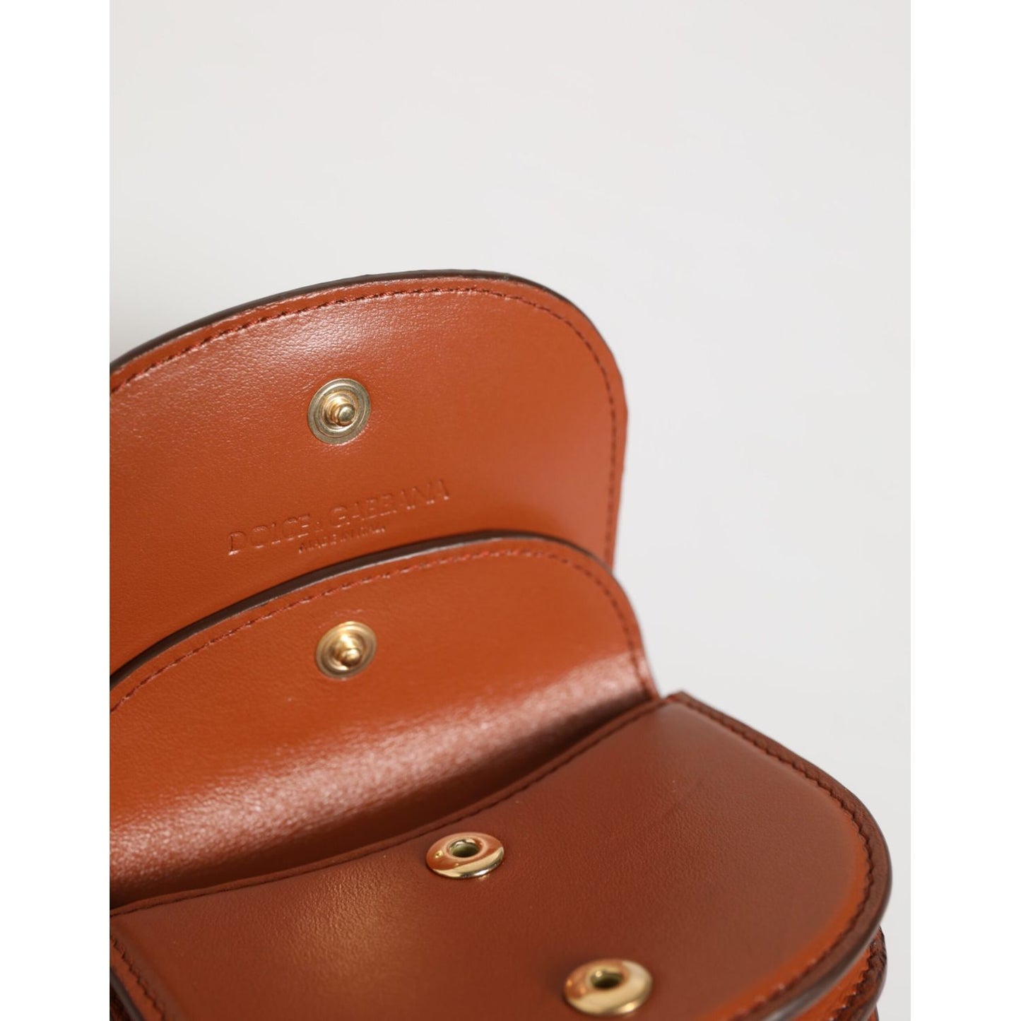 Crafted from premium calf leather, this compact purse features a bold brown leopard print with a structured silhouette. The interior is smooth brown leather with dual compartments and a secure snap button closure. Finished with a gold-tone Dolce & Gabbana logo plaque at the front, this accessory is both practical and chic.