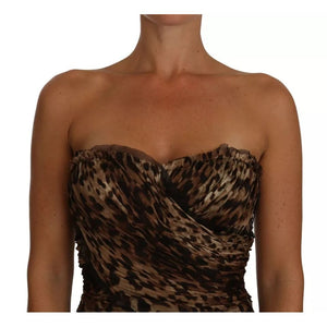 Dolce & Gabbana Brown Leopard Silk Chiffon Ruched Mermaid Maxi Dress