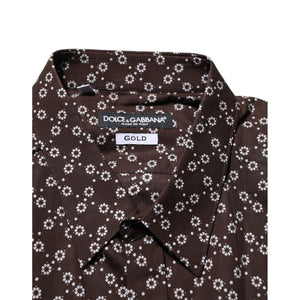 Dolce & Gabbana BrownFloral Collared GOLD Formal Dress Shirt