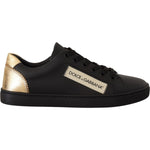 Dolce & Gabbana Black Gold Leather Low Top Sneakers Womens Shoes