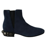 Dolce & Gabbana Blue Suede Embellished Studded Boots Shoes