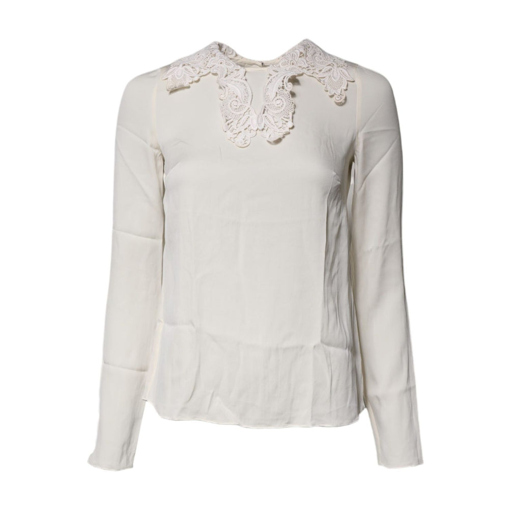 Dolce & Gabbana Cream Floral Lace Long Sleeves Blouse Top