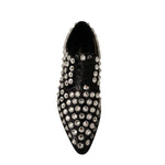 Dolce & Gabbana Black Leather Crystals Lace Up Formal Shoes